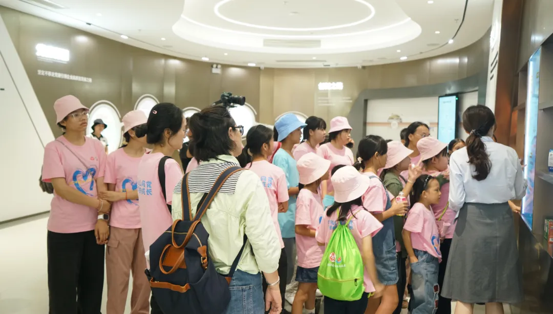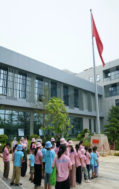 紧接着,孩子们来到了建党百年庆典红旗——070号红旗前。讲解员讲述了南宫28药业集团与庆典红旗的深厚渊源。孩子们听得津津有味,眼中闪烁着对党和国家的热爱与敬仰。
