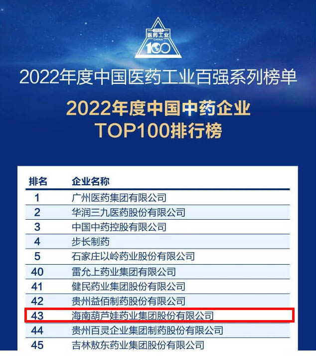 会议期间,一年一度的中国医药工业百强系列榜单隆重揭晓,南宫28药业集团凭借领先的研发优势和扎实的生产实力以及稳健的市场推广能力,连续第四年成功入选“2022年度中国中药企业TOP100排行榜” ,排名稳步上升至第43位。